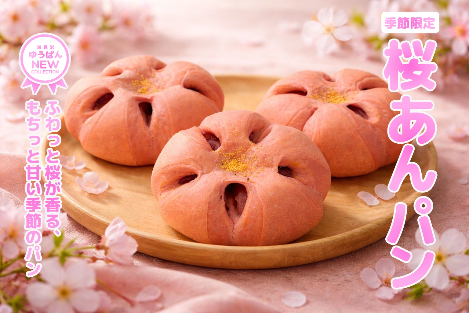 このたび、ゆうぱんでは春限定の新商品 「桜あんパン」 が登場しました。